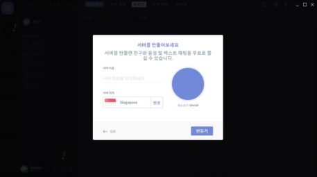 만들려는 서버 이름을 지어주고, 디스코드 서버위치를 선택하는 설정만 하면됩니다.
