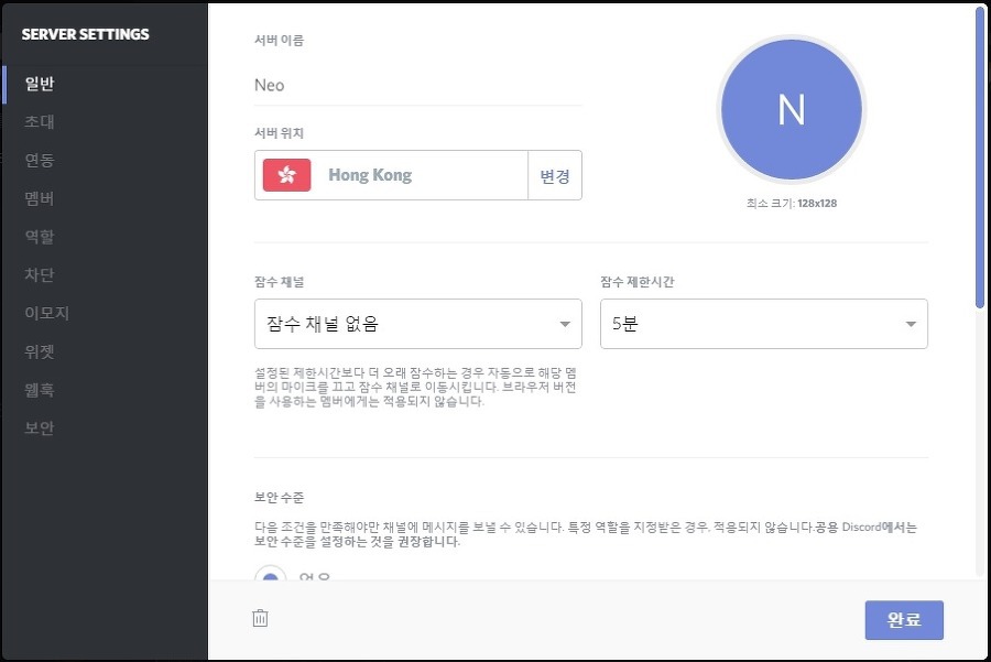 디스코드 한국서버가 아직 없습니다.